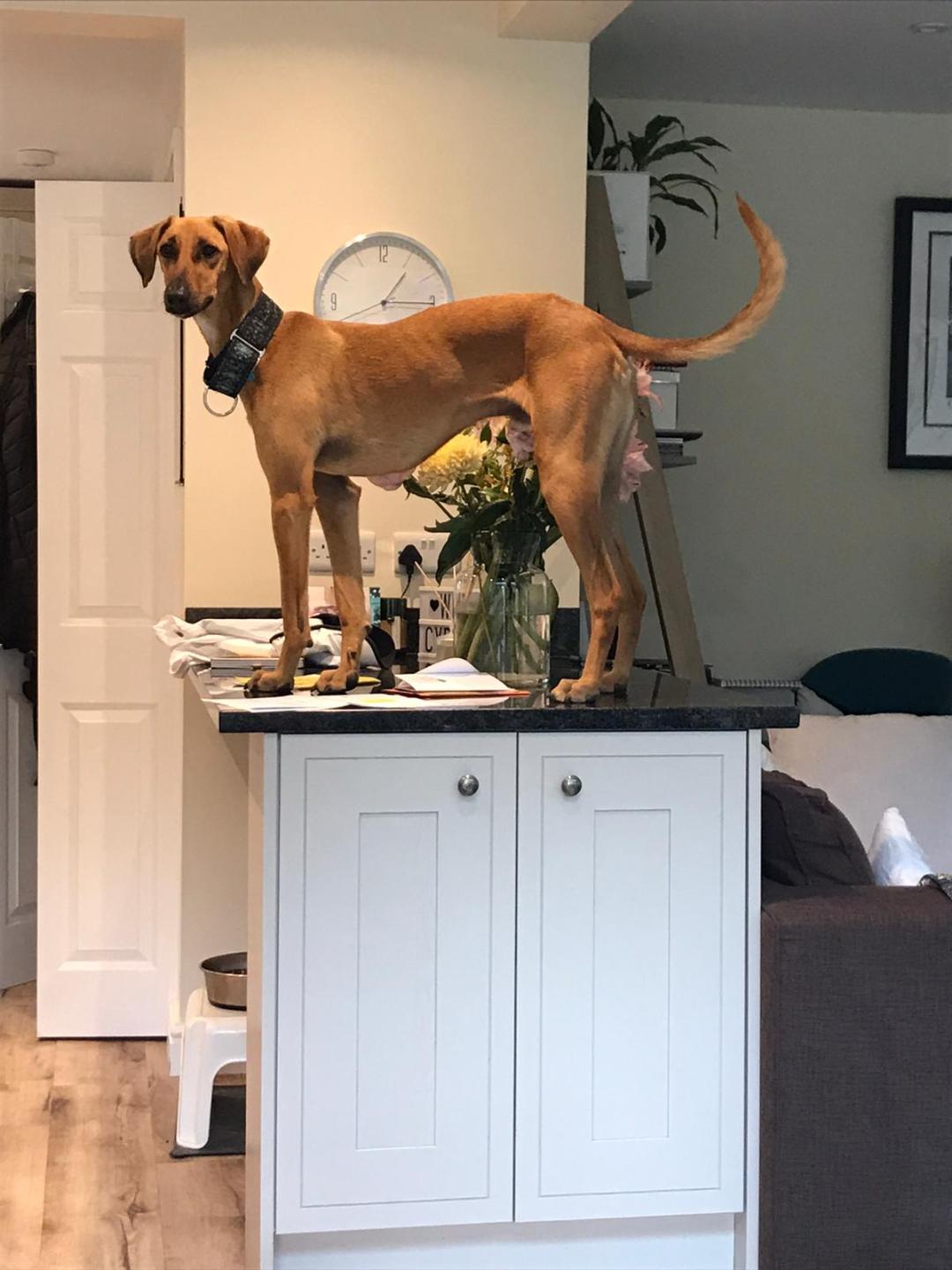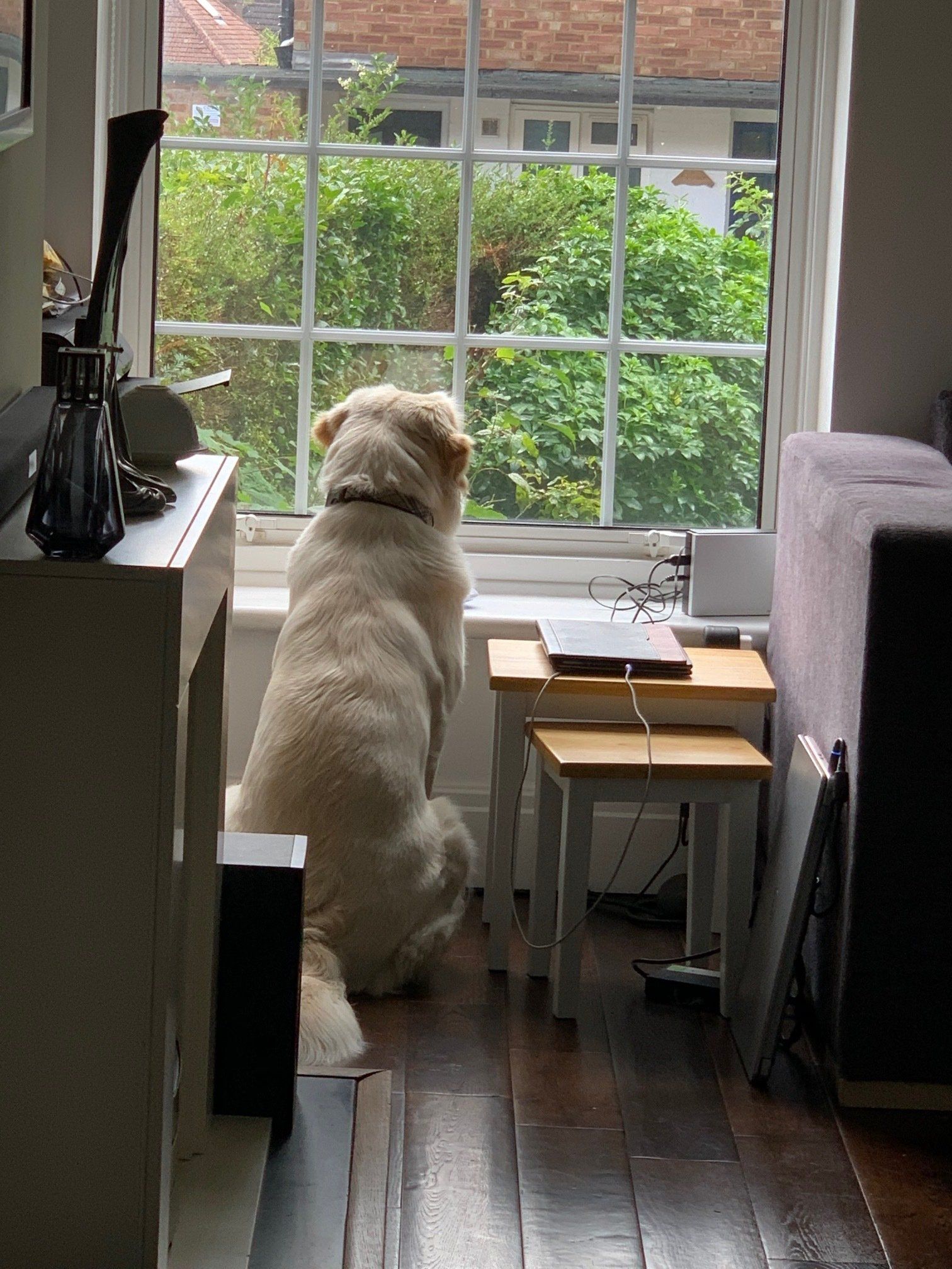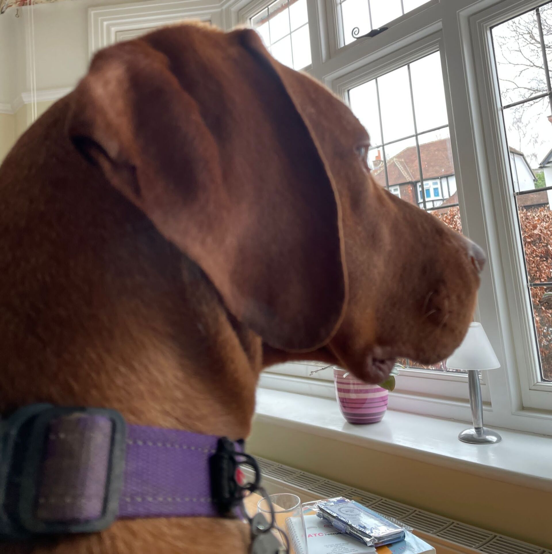 Bailey waiting at the window for me